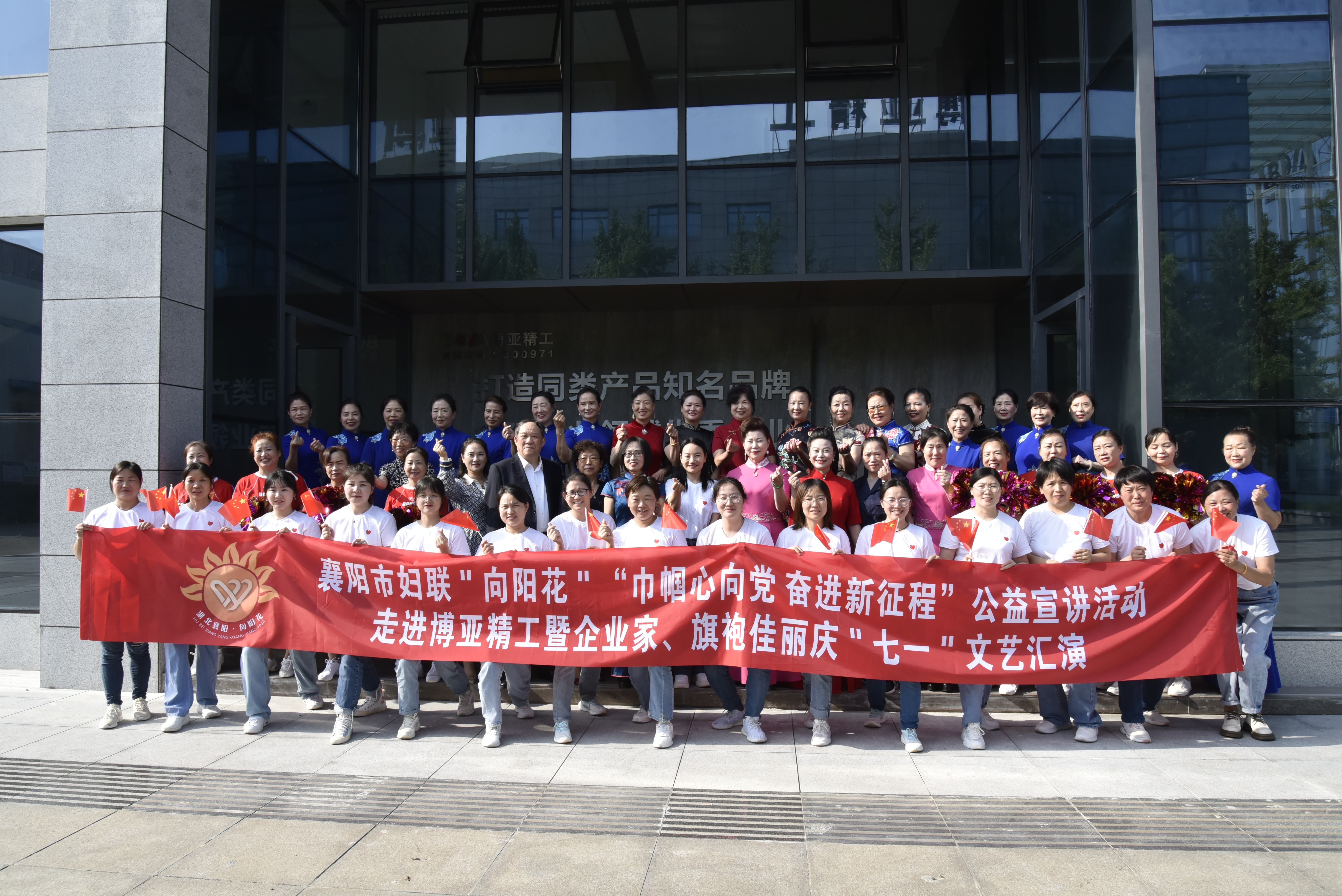 在中國共產黨成立102周年和傳統端午佳節即將來臨之際,6月20日下午,由襄陽市婦聯主辦,襄陽市社會科學界聯合會、襄陽市高新區總工會、襄陽市民管局協辦,襄陽博亞精工裝備股份有限公司、襄陽市旗袍文化研究會承辦的2023年襄陽市婦聯向陽花“巾幗心向黨 奮進新征程”公益宣講活動暨女企業家、旗袍佳麗慶“七一”文藝匯演在博亞總部隆重舉行。公司董事、財務總監、婦委會主任康曉莉攜黨群辦公室主任嚴慶及公司女員工代表共37個人出席活動。