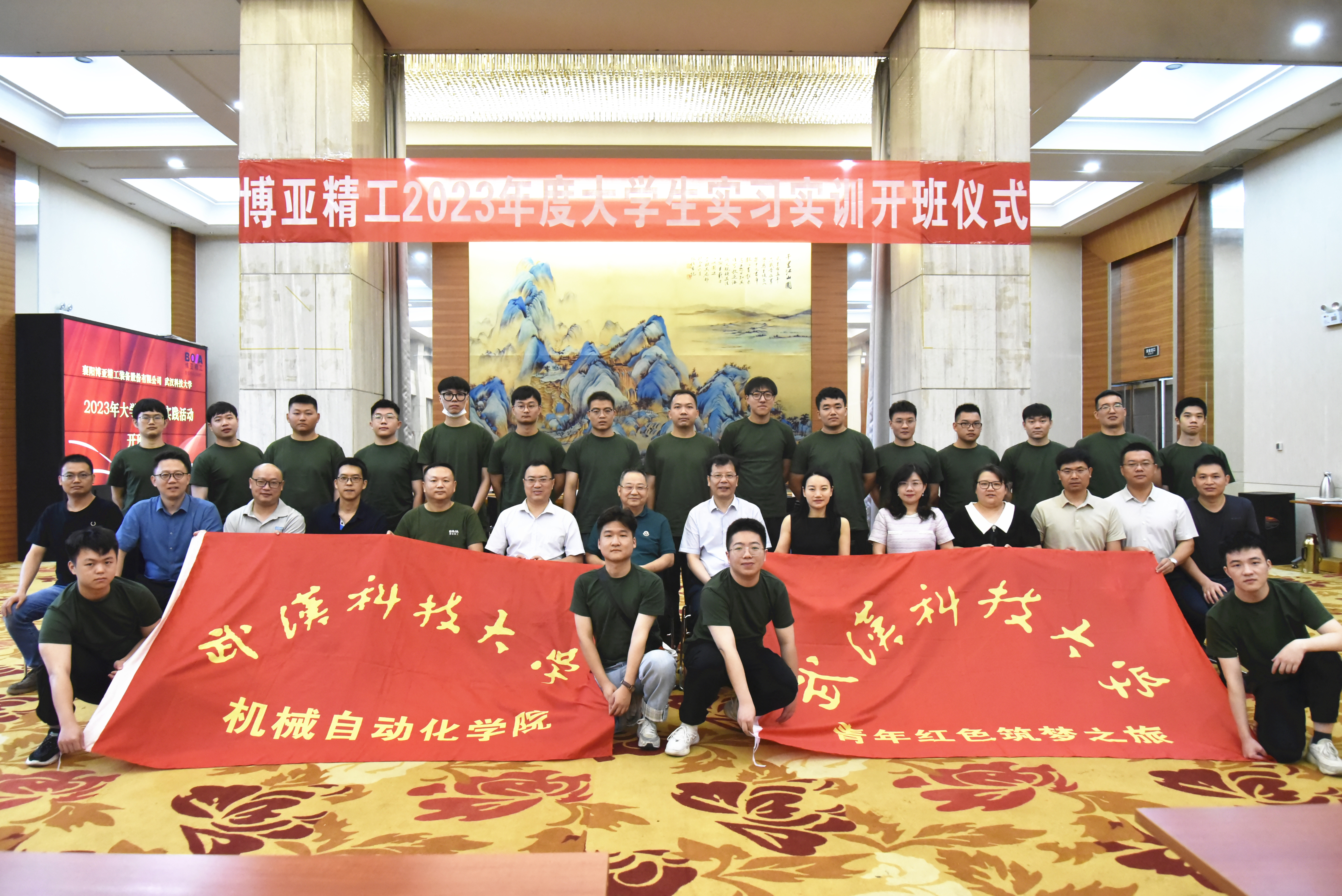 7月25日上午,博亞精工與武漢科技大學2023年大學生暑期實踐活動開班儀式在公司日產總部313會議室隆重舉行。儀式由公司人力資源中心總監劉濤主持。公司李總攜財務總監康曉莉、副總經理鄧杰禮等相關領導參加。武漢科技大學科學技術發展院院長夏緒輝教授、機械自動化學院黨委副書記瞿孝平、機械自動化學院副院長王蕾副教授、綠色智能制造工程研究所副所長張澤琳副教授、機械自動化學院博士服務代表張歡博士和19名實習大學生等共同出席。