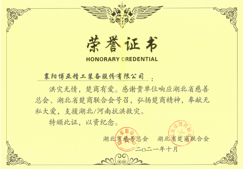 近年來,博亞公司始終積極倡導“企業發展不忘回饋社會”理念,大力弘揚光彩精神,積極履行社會責任,主動參與精準扶貧、鄉村振興、光彩事業和公益慈善事業,累計捐贈資金1000多萬元。2018年被評為全國“萬企幫萬村”先進民營企業。2020年被全國工商聯表彰為抗擊新冠肺炎疫情先進民營企業。2021年4月,公司黨委書記、董事長李文喜被表彰為“全省脫貧攻堅先進個人”,5月,被表彰為湖北省光彩事業助力鄉村振興、社會公益“光彩之星”,公司被表彰為助力鄉村振興“萬企興萬村”行動標兵。同時,為把博亞人和、擔當精神傳承下去,在2020年修訂公司章程時,寫入了黨建和履行社會責任的具體要求,用實際行動詮釋了博亞公司的家國情懷和責任擔當。