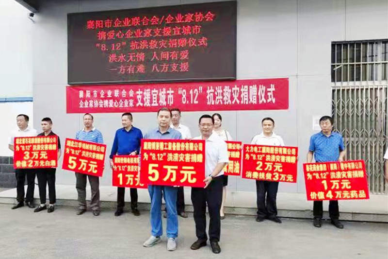 “8.12”宜城市暴雨洪澇災(zāi)害共造成21萬(wàn)人、53.99萬(wàn)畝農(nóng)作物受災(zāi)、460個(gè)村莊受淹,降雨量是有氣象記錄以來(lái)的歷史極值。洪水無(wú)情,人間有愛(ài);一方有難,八方支援。為幫助宜城抗洪救災(zāi),盡快恢復(fù)生產(chǎn)生活,9月3日上午,襄陽(yáng)市企業(yè)聯(lián)合會(huì)/企業(yè)家協(xié)會(huì)在宜城市愛(ài)心公益超市廣場(chǎng)舉行支援宜城市“8.12”抗洪救災(zāi)捐贈(zèng)儀式,9家愛(ài)心企業(yè)現(xiàn)場(chǎng)捐贈(zèng)現(xiàn)金38萬(wàn)元以及價(jià)值12萬(wàn)元的物資。博亞公司捐贈(zèng)現(xiàn)金5萬(wàn)元,略盡綿力支援宜城市防汛救災(zāi),幫助受災(zāi)群眾渡過(guò)難關(guān),用實(shí)際行動(dòng)展現(xiàn)博亞企業(yè)責(zé)任和擔(dān)當(dāng)。