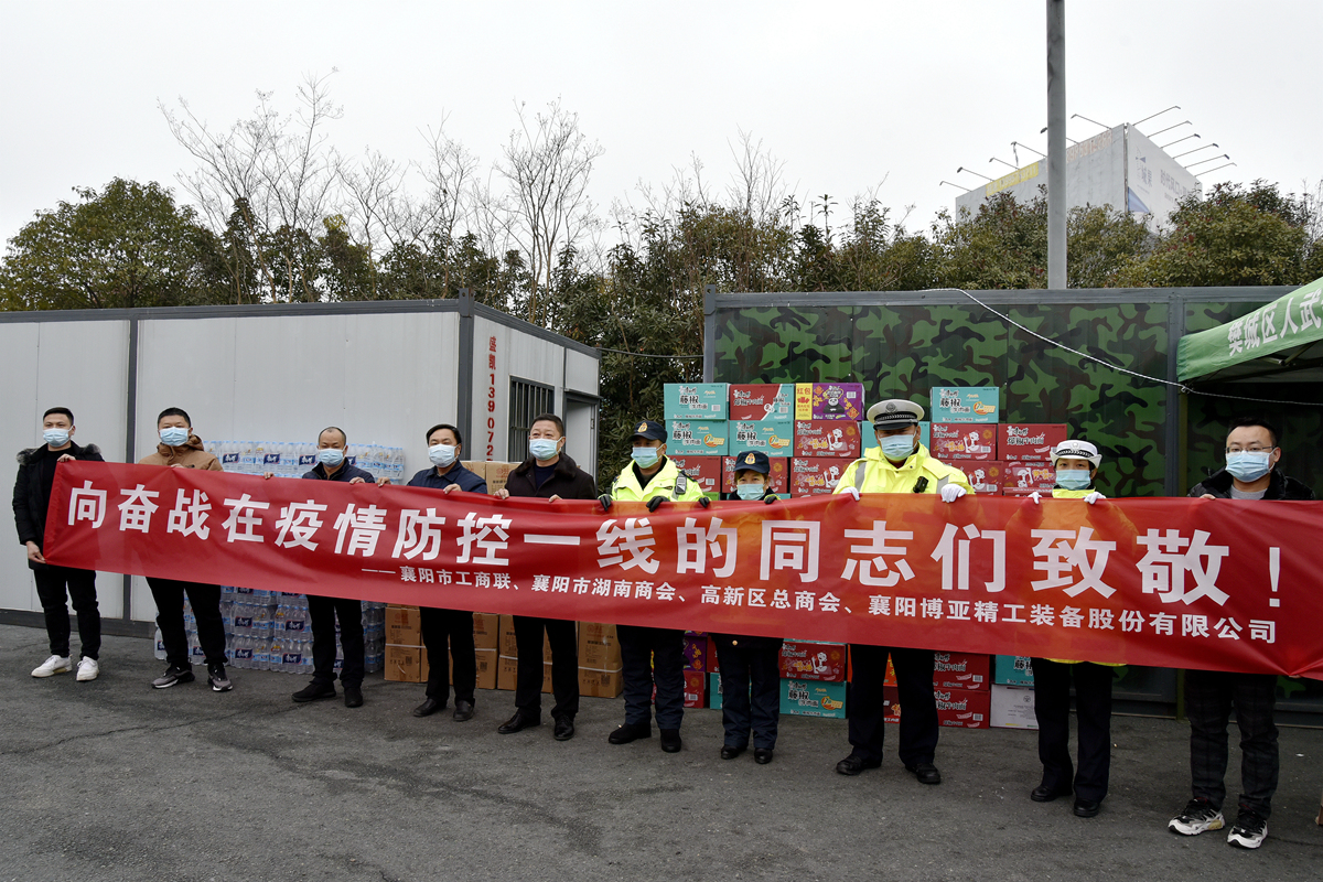 面對防控人員的辛勤付出,博亞不忘上市企業(yè)責(zé)任擔(dān)當(dāng),在公司李總親自部署下,于1月6日上午安排公司黨群工作人員,陪同市工商聯(lián)副主席金雁等領(lǐng)導(dǎo),趕往襄陽北高速出口疫情防控點,看望慰問疫情防控一線工作人員,給他們送去礦泉水、方便面、取暖器等食用保暖物資,向他們表達(dá)博亞公司的崇高敬意,感謝他們?yōu)槭刈o(hù)襄陽人民生命健康安全所做的努力和奉獻(xiàn)。