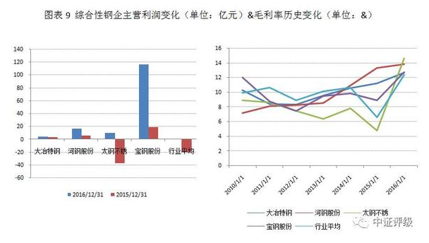 行業(yè)基本面的整體回暖難以掩蓋企業(yè)間的結(jié)構(gòu)分化,部分企業(yè)財務(wù)數(shù)據(jù)跑輸行業(yè)平均表現(xiàn),甚至變化趨勢與行業(yè)周期相背離,主要體現(xiàn)為資源型鋼企。另外,同是經(jīng)營改善的企業(yè)中也存在不同驅(qū)動因素的分化,本輪鋼鐵行業(yè)的強(qiáng)勢復(fù)蘇既有落后產(chǎn)能淘汰等中長期產(chǎn)業(yè)結(jié)構(gòu)升級因素,也有庫存周期和基建投資推動的短期因素,不同的驅(qū)動因素將決定企業(yè)業(yè)績恢復(fù)的可持續(xù)性。依賴建筑鋼材和中低端板材的鋼企雖在短期內(nèi)基本面均向好,建筑型鋼企受短期補(bǔ)庫存和地條鋼整頓等影響表現(xiàn)短期內(nèi)甚至好于其他產(chǎn)品結(jié)構(gòu)較優(yōu)的鋼鐵企業(yè),但從中長期行業(yè)發(fā)展趨勢看,基本面復(fù)蘇的支撐仍以具有產(chǎn)品結(jié)構(gòu)優(yōu)勢的大型綜合鋼企和特鋼企業(yè)較強(qiáng)。